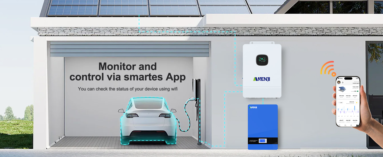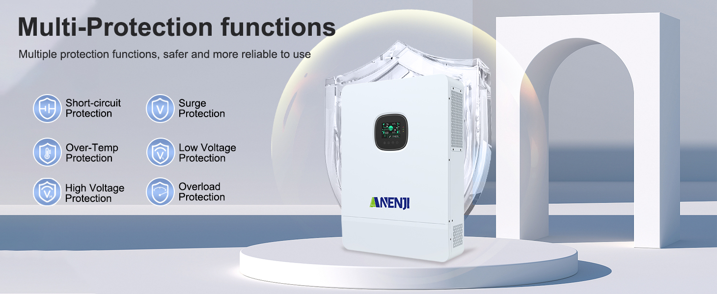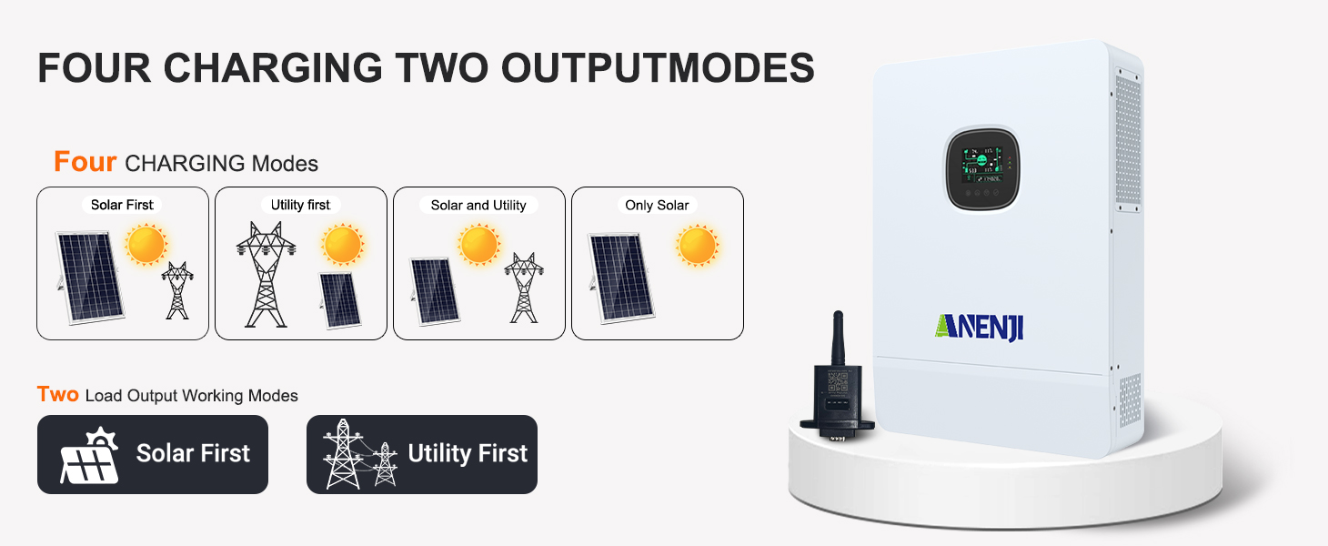 ANENJI 12KW-36KW 48V 2*MPPT 3-phase solar off-grid inverter is a new type of solar storage inverter control inverter that integrates solar energy storage, utility charging energy storage, and AC sine wave output.