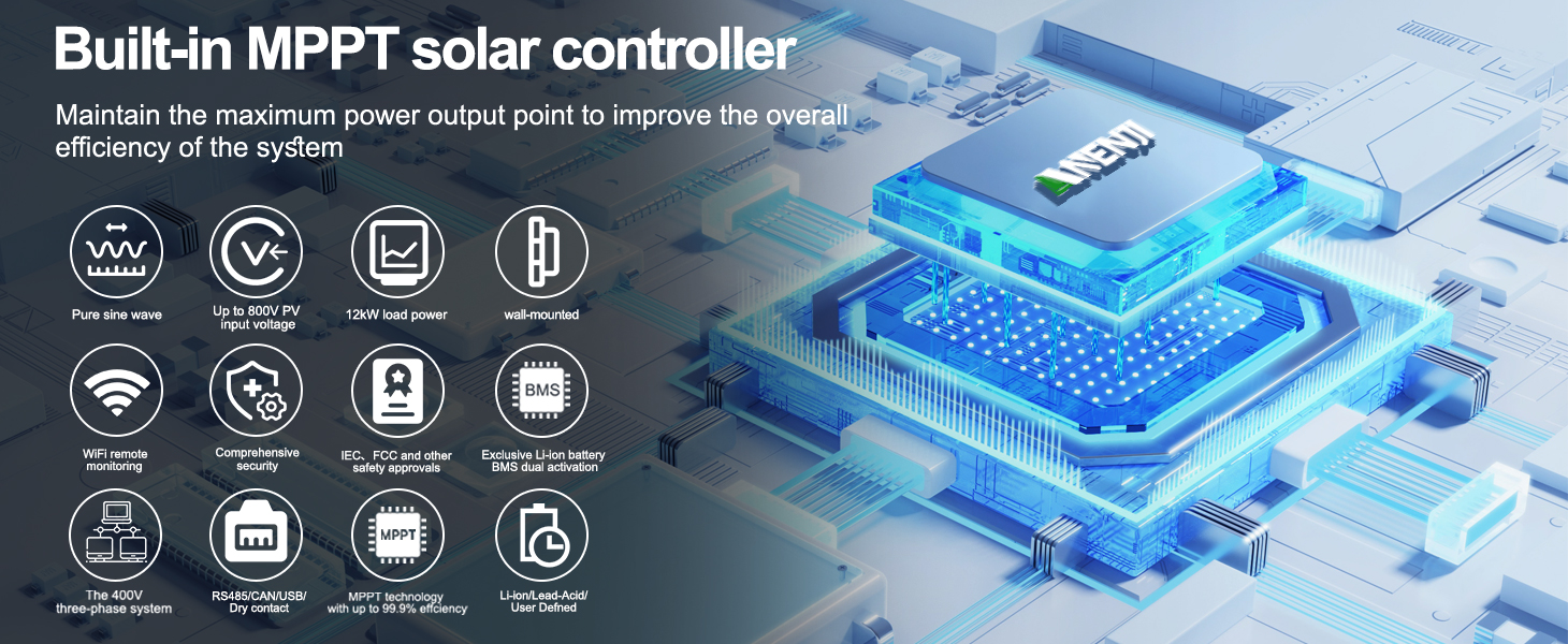 Advanced MPPT Technology: Utilizes the latest MPPT technology with up to 99.9% efficiency, maximizing the energy conversion from solar panels.