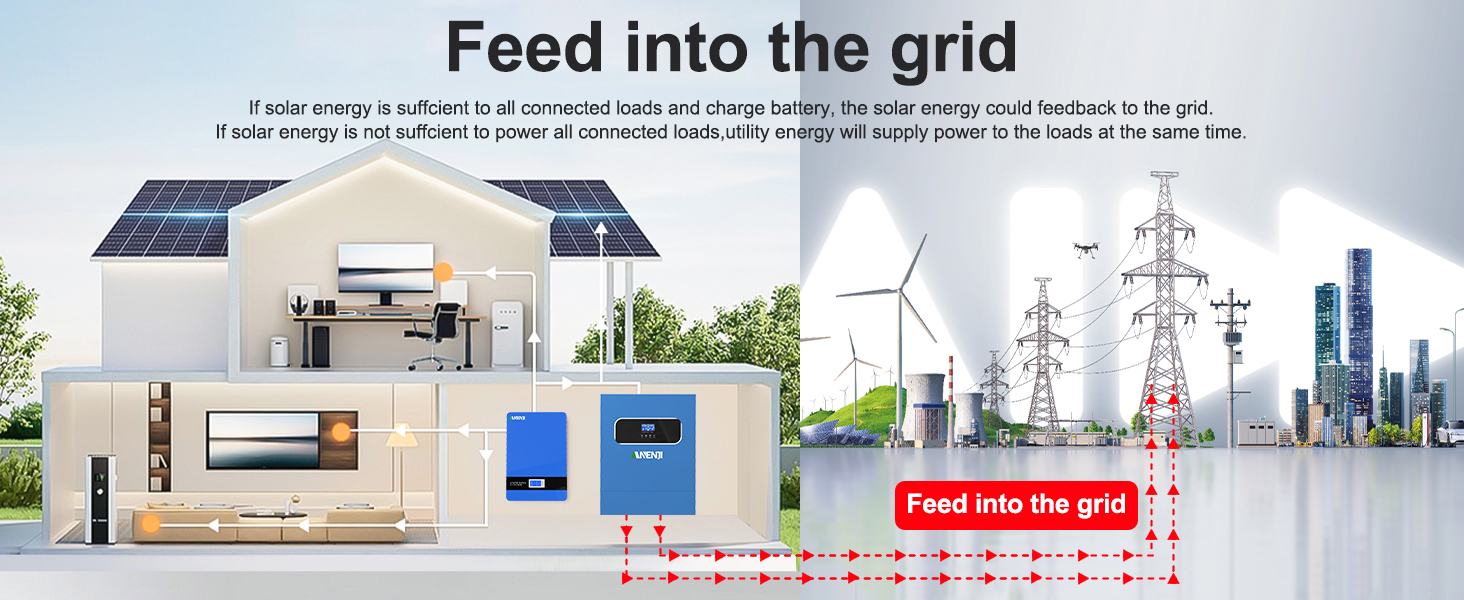 lf solar energy is sufcient to all connected loads and charge battery, the solar energy could feedback to the grid.