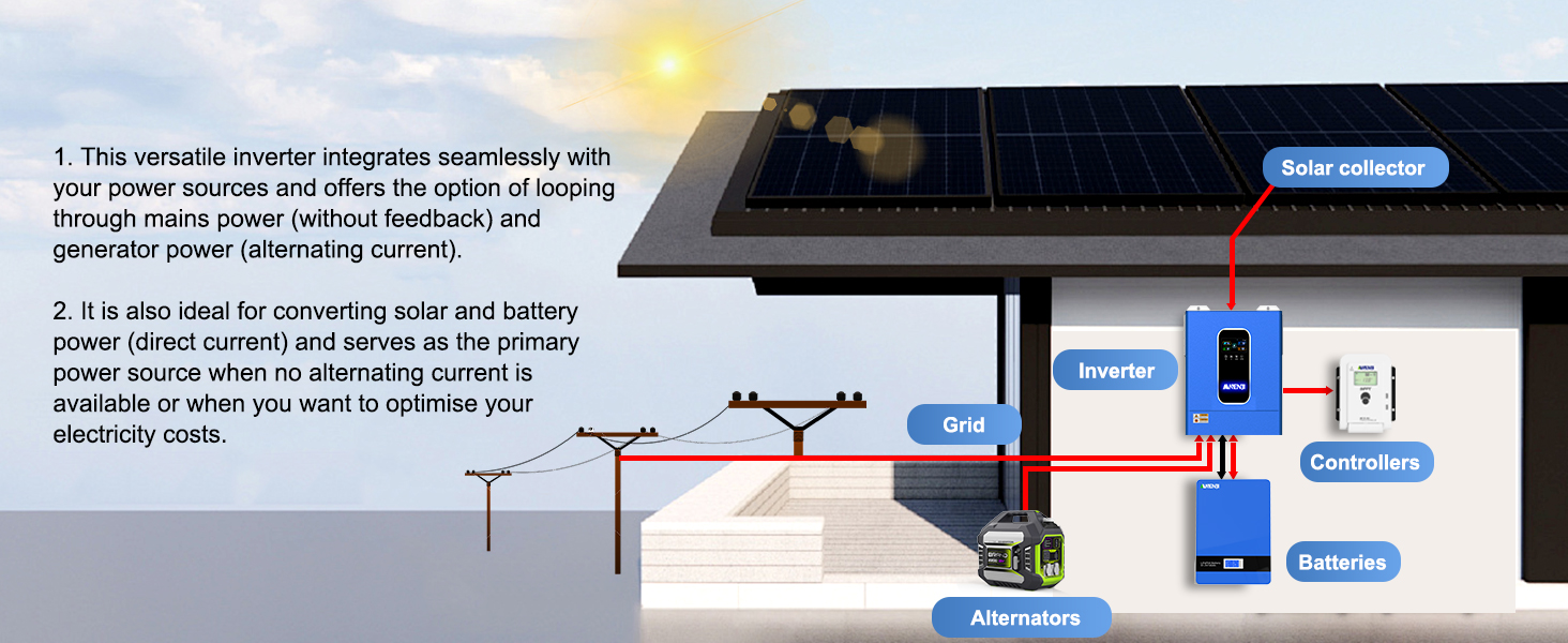 Off-grid and on-grid function: For both off-grid and on-grid systems.Parallel Function for  6 unit Max